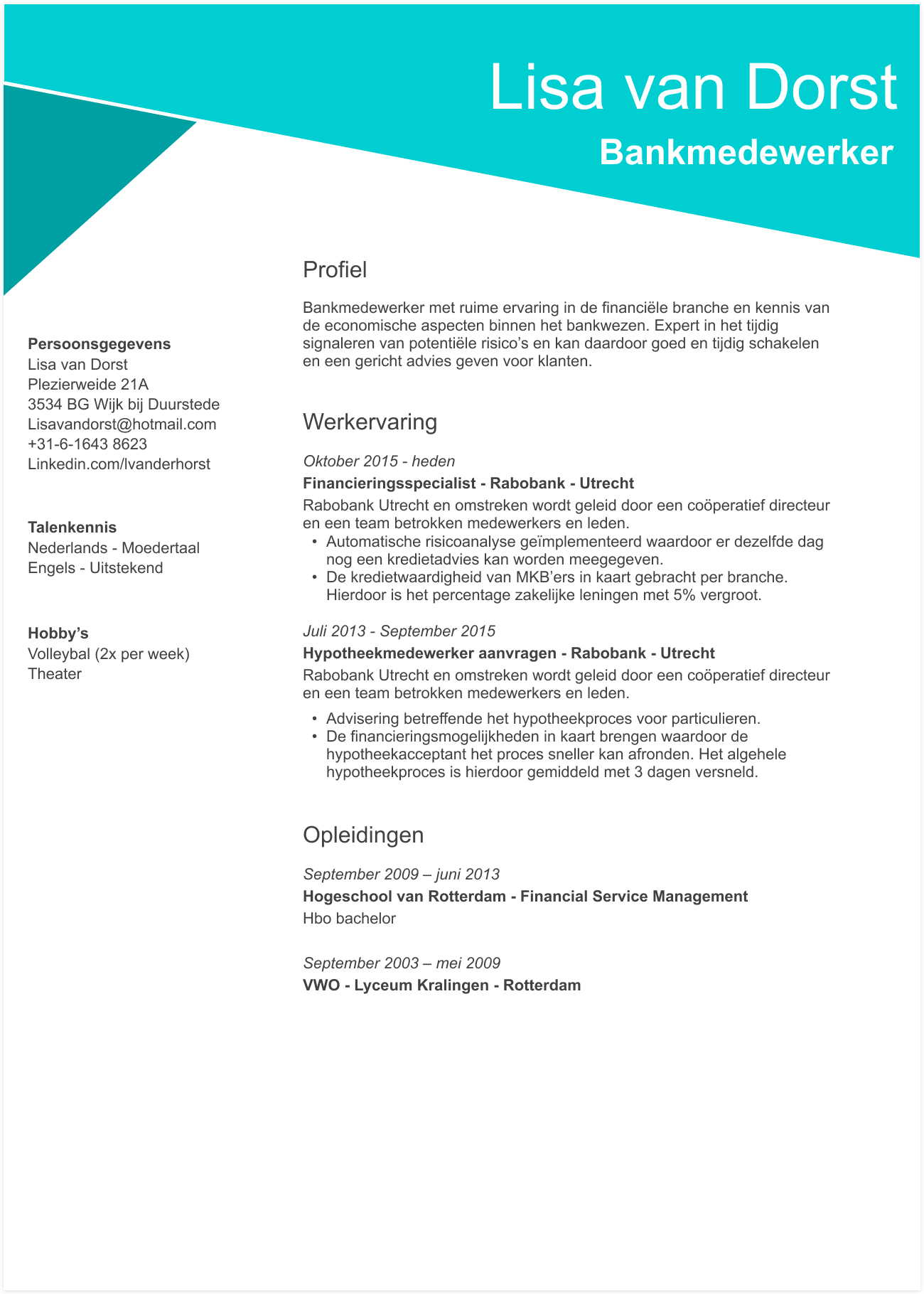 Cv template Bankmedewerker