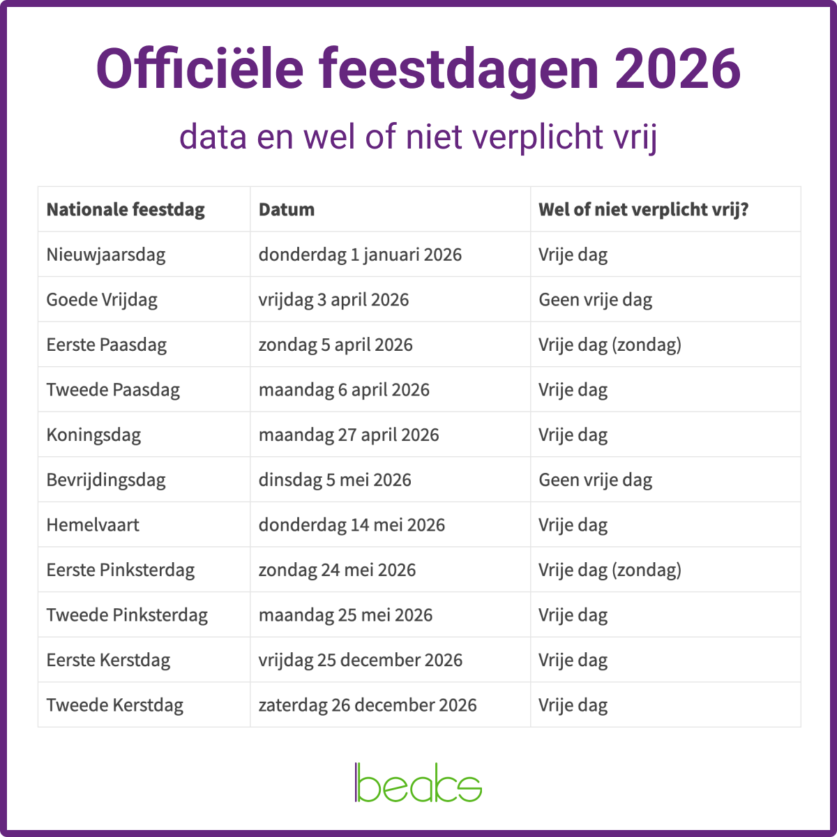 | Bevrijdingsdag | dinsdag 5 mei 2026 | Geen vrije dag |